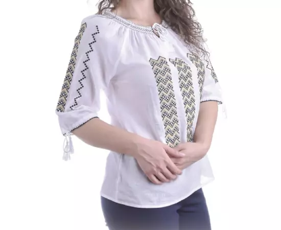 Bluza Tip Ie Traditionala Alba cu Motiv Geometric Auriu de Dama - IMS88