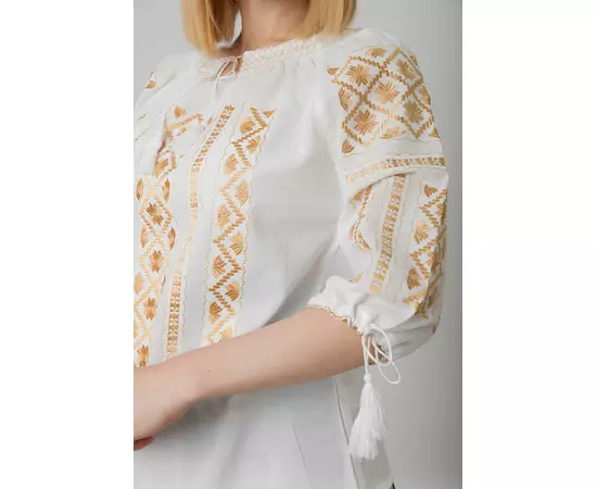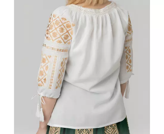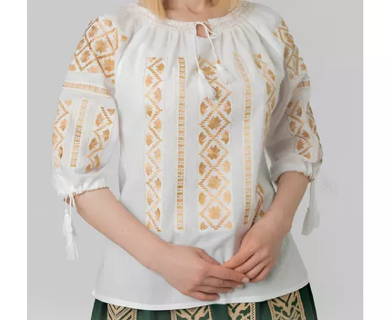 Bluza Tip Ie Traditionala Alba cu Motiv Floral Auriu de Dama - IMS130