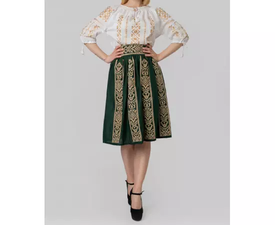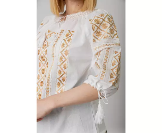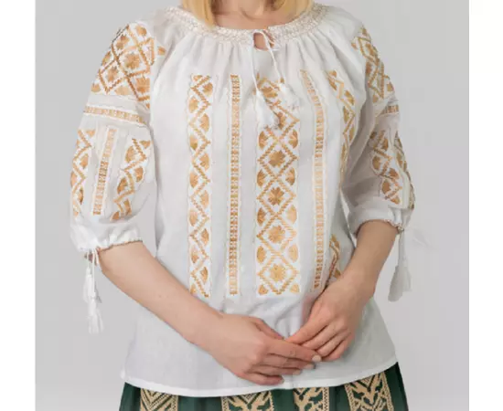 Bluza Tip Ie Traditionala Alba cu Motiv Floral Auriu de Dama - IMS130