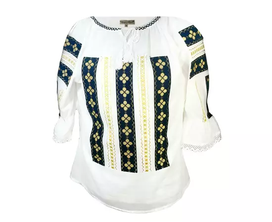 Bluza Tip Ie Traditionala Alba cu Motiv Floral Auriu de Dama - IMS135