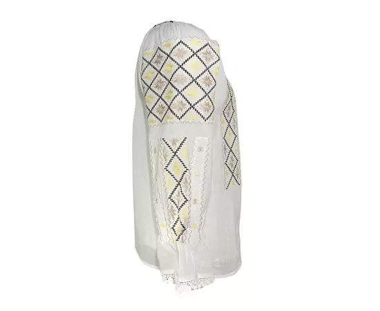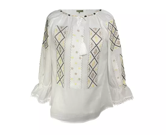 Bluza Tip Ie Traditionala Alba cu Motiv Floral Auriu de Dama - IMS142