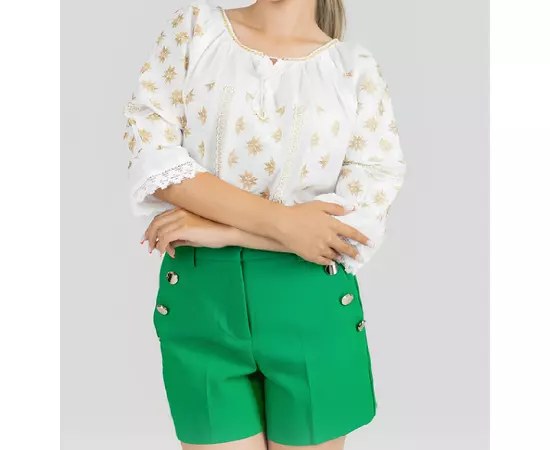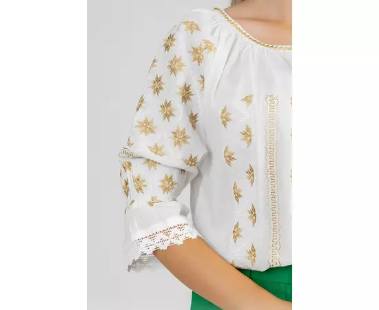 Bluza Tip Ie Traditionala Alba cu Motiv Floral Auriu de Dama - IMS153