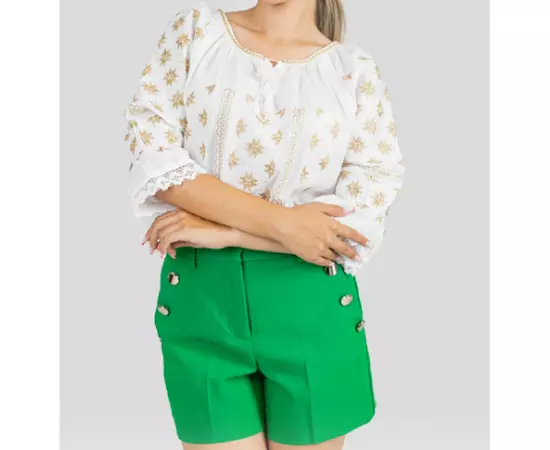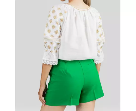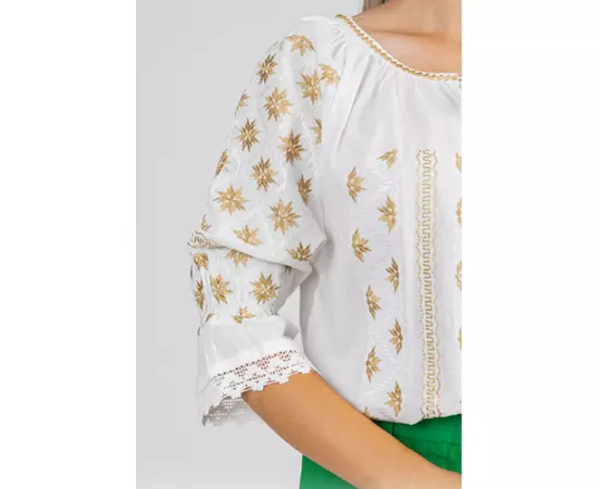 Bluza Tip Ie Traditionala Alba cu Motiv Floral Auriu de Dama - IMS153