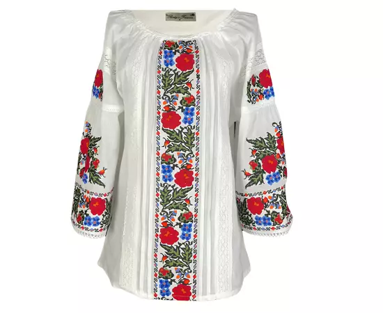 Bluza Tip Ie Traditionala Alba cu Motiv Floral Colorat de Dama - IMS166