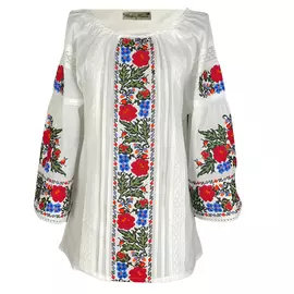 Bluza Tip Ie Traditionala Alba cu Motiv Floral Colorat de Dama - IMS166