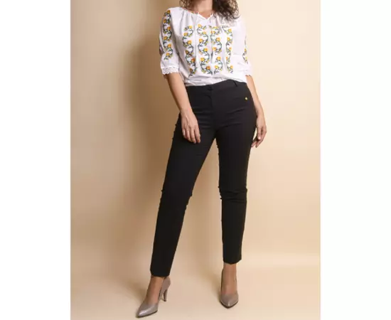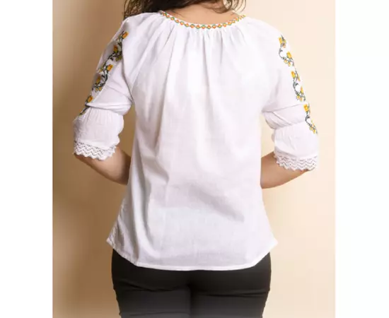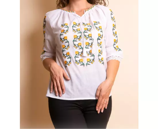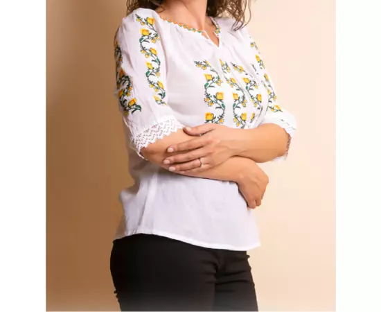 Bluza Tip Ie Traditionala Alba cu Motiv Floral Galben de Dama - IMS110