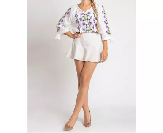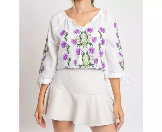 Bluza Tip Ie Traditionala Alba cu Motiv Floral Mov de Dama - IMS49
