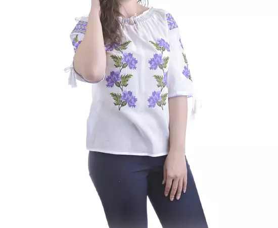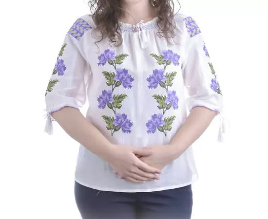 Bluza Tip Ie Traditionala Alba cu Motiv Floral Mov de Dama - IMS51