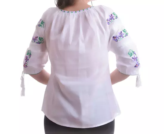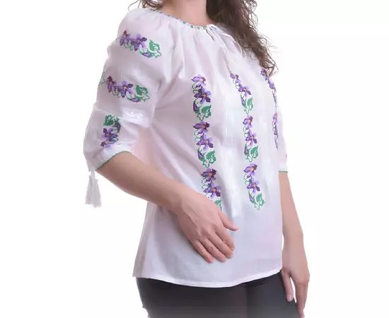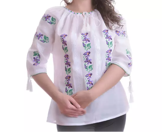 Bluza Tip Ie Traditionala Alba cu Motiv Floral Mov de Dama - IMS68
