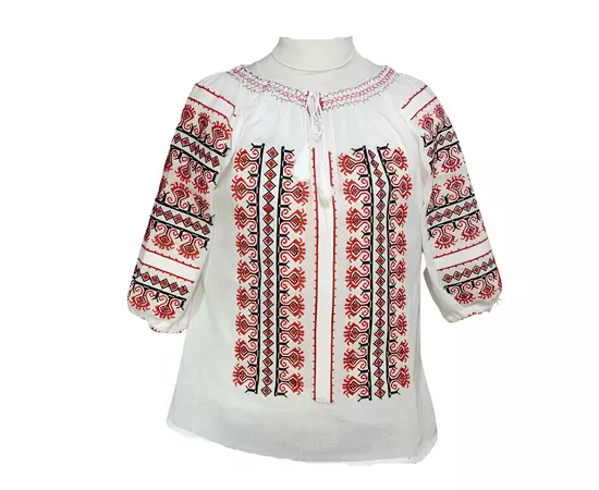 Bluza Tip Ie Traditionala Alba cu Motiv Geometric Rosu de Dama - IMS103