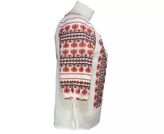 Bluza Tip Ie Traditionala Alba cu Motiv Geometric Rosu de Dama - IMS103