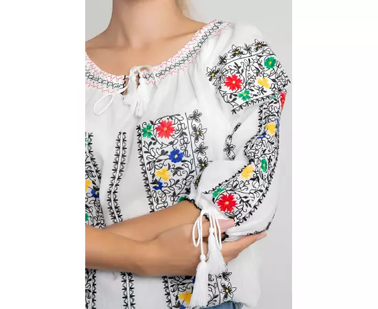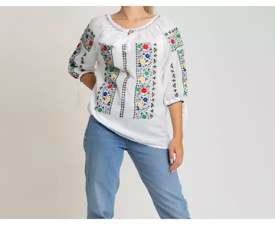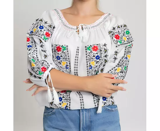 Bluza Tip Ie Traditionala Alba cu Motiv Floral Multicolor de Dama - IMS106