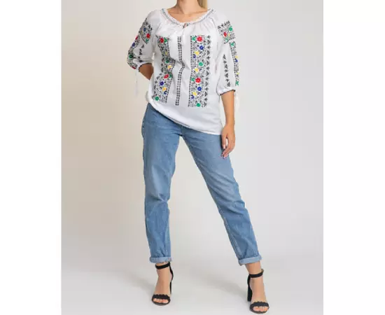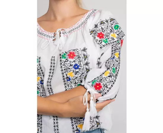Bluza Tip Ie Traditionala Alba cu Motiv Floral Multicolor de Dama - IMS106