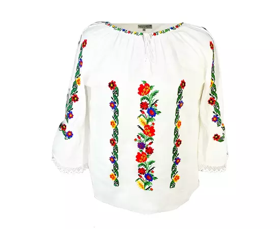 Bluza Tip Ie Traditionala Alba cu Motiv Floral Multicolor de Dama - IMS154