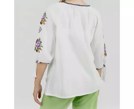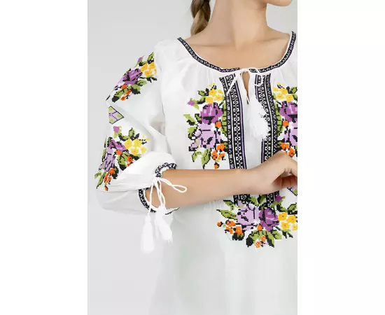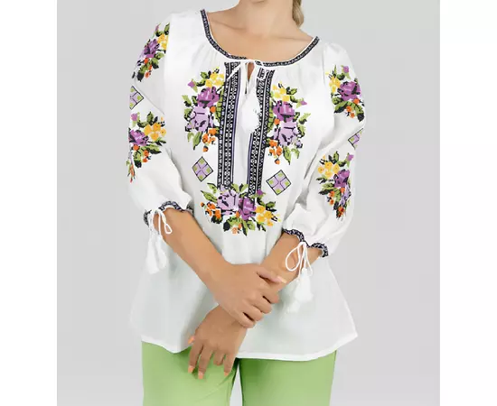 Bluza Tip Ie Traditionala Alba cu Motiv Floral Multicolor de Dama - IMS163