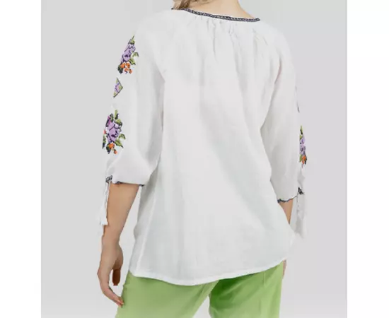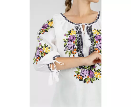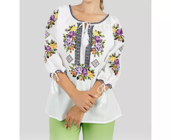 Bluza Tip Ie Traditionala Alba cu Motiv Floral Multicolor de Dama - IMS163