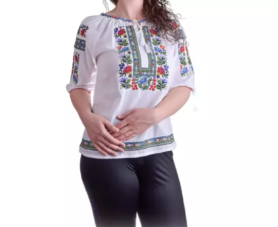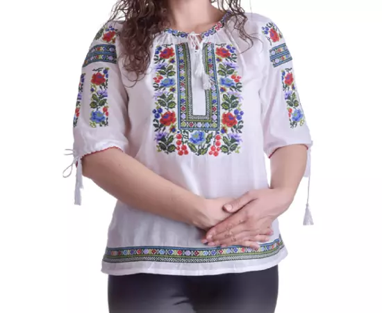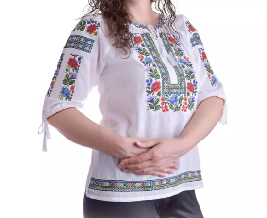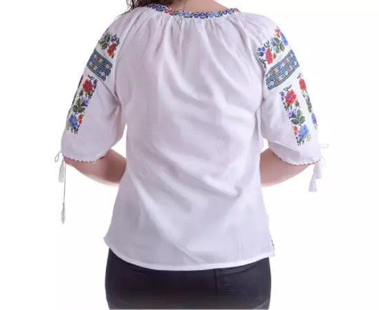 Bluza Tip Ie Traditionala Alba cu Motiv Floral Multicolor de Dama - IMS84