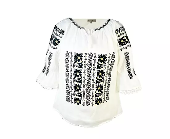 Bluza Tip Ie Traditionala Alba cu Motiv Floral Negru de Dama - IMS155