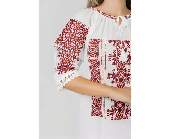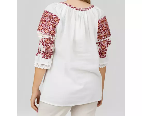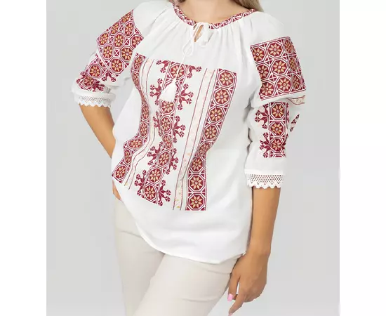 Bluza Tip Ie Traditionala Alba cu Motiv Floral Rosu de Dama - IMS134