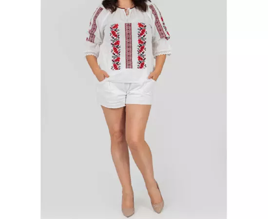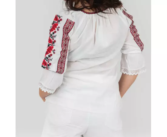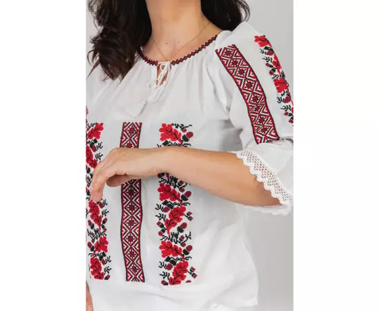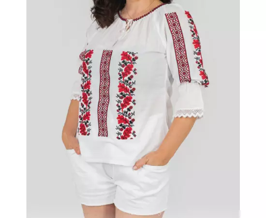 Bluza Tip Ie Traditionala Alba cu Motiv Floral Rosu de Dama - IMS138