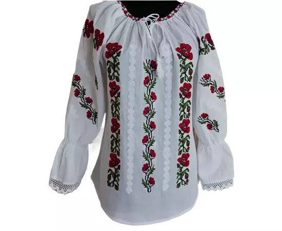 Bluza Tip Ie Traditionala Alba cu Motiv Floral Rosu de Dama - IMS46