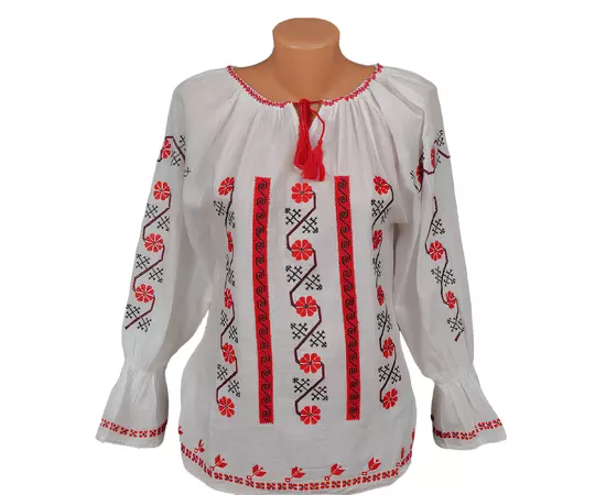 Bluza Tip Ie Traditionala Alba cu Motiv Floral Rosu de Dama - IMS77
