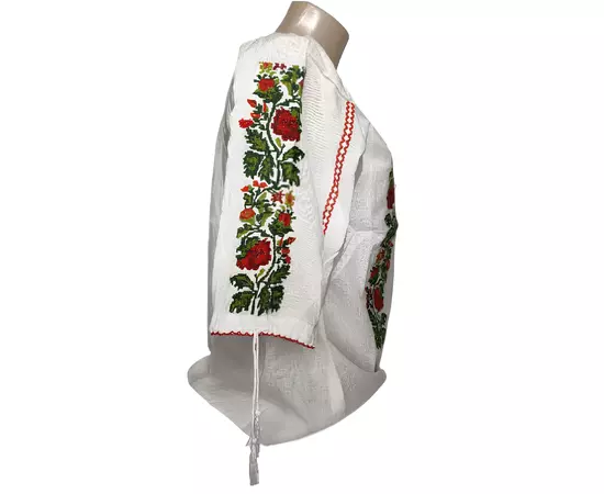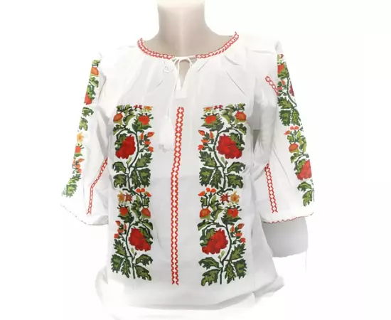 Bluza Tip Ie Traditionala Alba cu Motiv Floral Rosu de Dama - IMS81