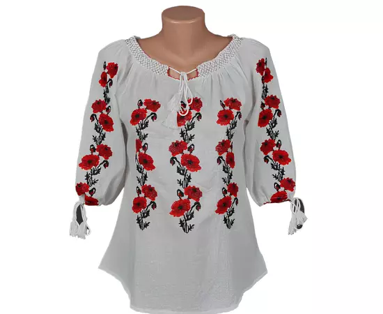 Bluza Tip Ie Traditionala Alba cu Motiv Floral Rosu de Dama - IMS83