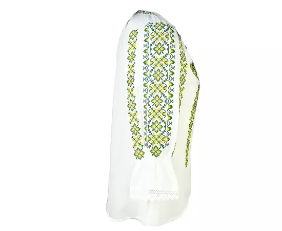 Bluza Tip Ie Traditionala Alba cu Motiv Floral Verde de Dama - IMS141