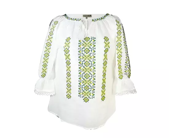 Bluza Tip Ie Traditionala Alba cu Motiv Floral Verde de Dama - IMS141
