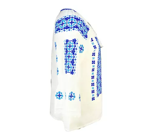 Bluza Tip Ie Traditionala Alba cu Motiv Geometric Albastru de Dama - IMS64