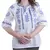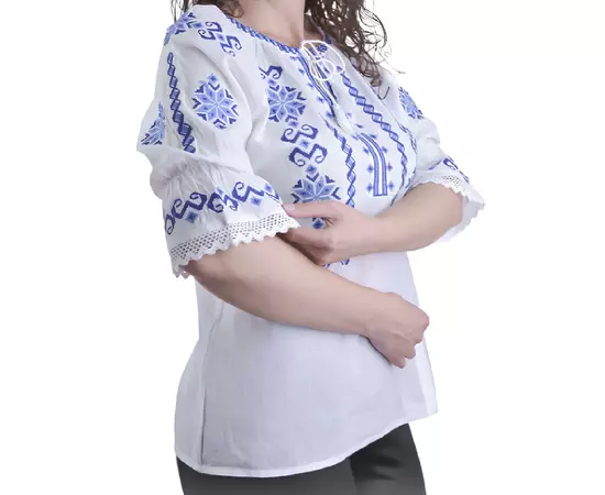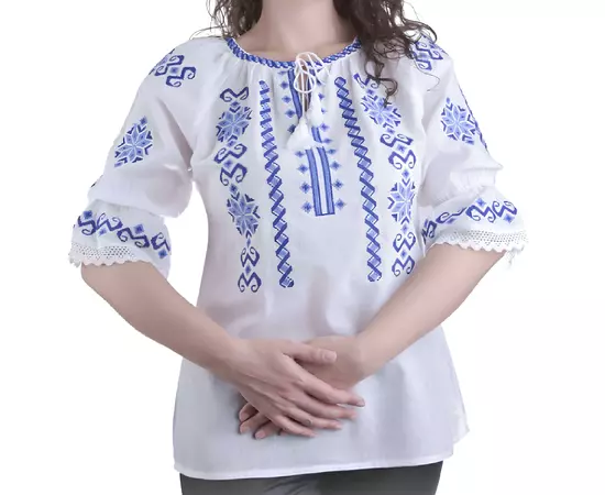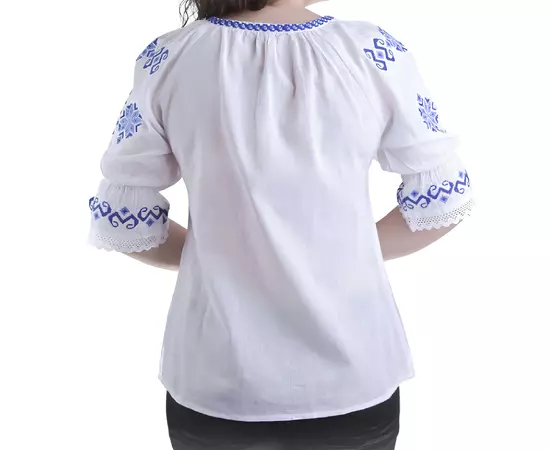 Bluza Tip Ie Traditionala Alba cu Motiv Geometric Albastru de Dama - IMS95