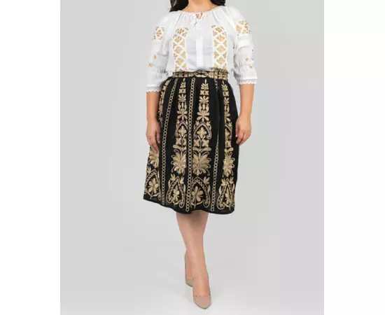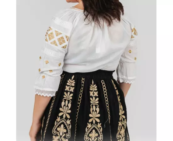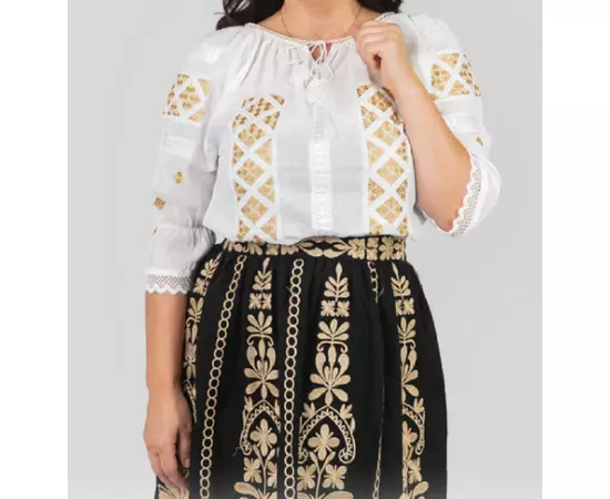 Bluza Tip Ie Traditionala Alba cu Motiv Geometric Auriu de Dama - IMS143