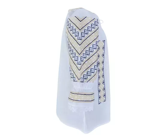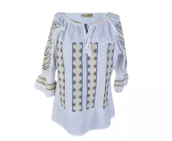 Bluza Tip Ie Traditionala Alba cu Motiv Geometric Auriu de Dama - IMS160