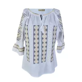 Bluza Tip Ie Traditionala Alba cu Motiv Geometric Auriu de Dama - IMS160