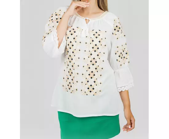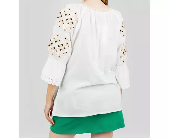 Bluza Tip Ie Traditionala Alba cu Motiv Geometric Crem de Dama - IMS149