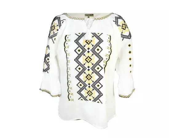 Bluza Tip Ie Traditionala Alba cu Motiv Geometric Crem de Dama - IMS151
