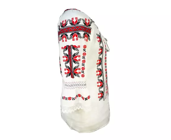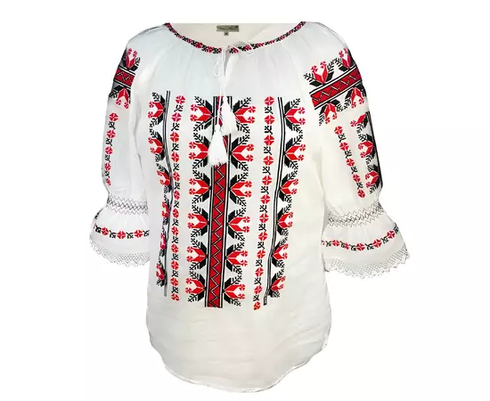 Bluza Tip Ie Traditionala Alba cu Motiv Geometric Multicolor de Dama - IMS113