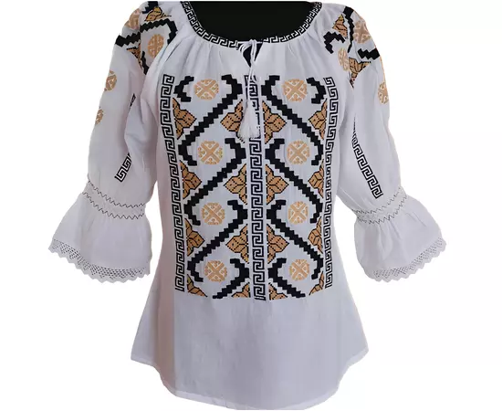 Bluza Tip Ie Traditionala Alba cu Motiv Geometric Multicolor de Dama - IMS115