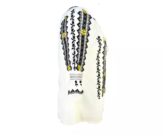 Bluza Tip Ie Traditionala Alba cu Motiv Geometric Negru de Dama - IMS129