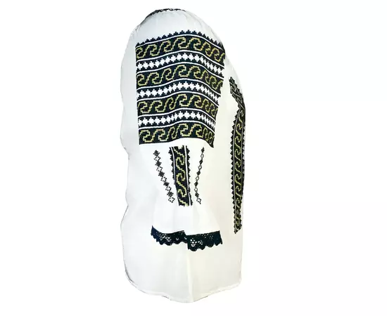 Bluza Tip Ie Traditionala Alba cu Motiv Geometric Negru de Dama - IMS132