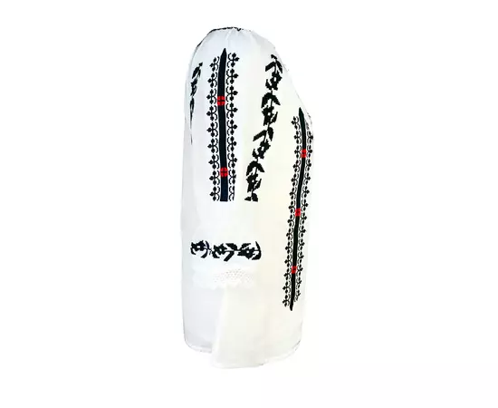 Bluza Tip Ie Traditionala Alba cu Motiv Geometric Negru de Dama - IMS148
