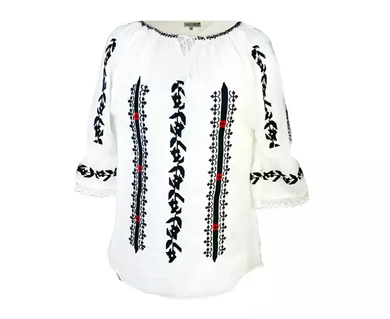 Bluza Tip Ie Traditionala Alba cu Motiv Geometric Negru de Dama - IMS148