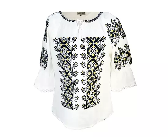 Bluza Tip Ie Traditionala Alba cu Motiv Geometric Negru de Dama - IMS152