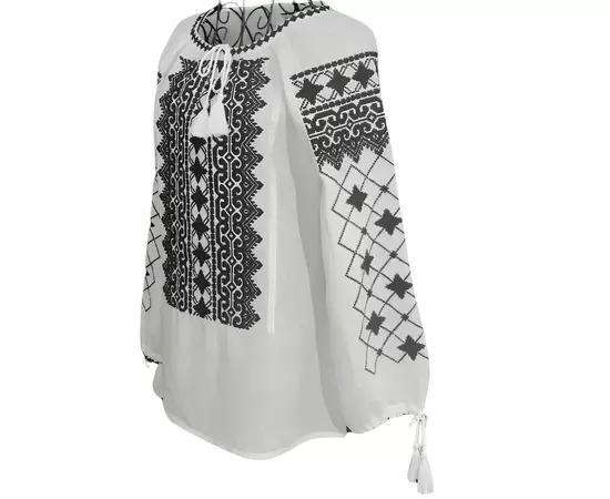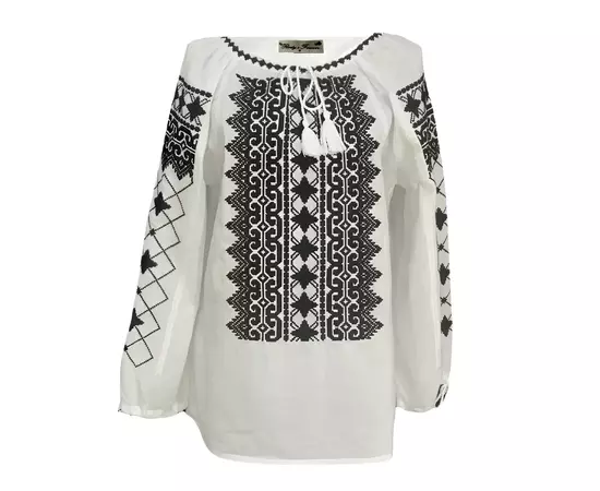 Bluza Tip Ie Traditionala Alba cu Motiv Geometric Negru de Dama - IMS167