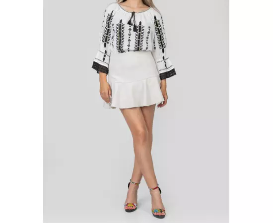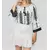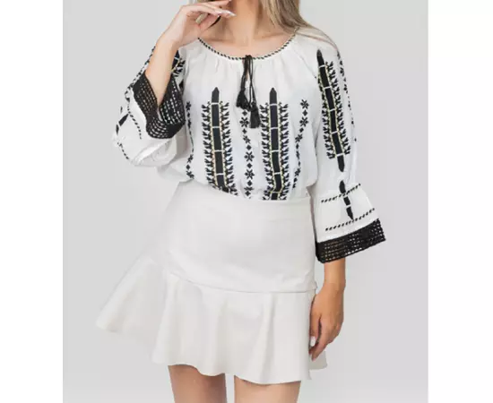 Bluza Tip Ie Traditionala Alba cu Motiv Geometric Negru de Dama - IMS63
