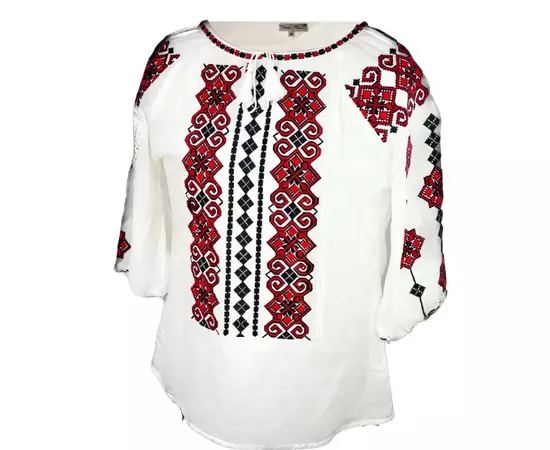 Bluza Tip Ie Traditionala Alba cu Motiv Geometric Rosu de Dama - IMS120