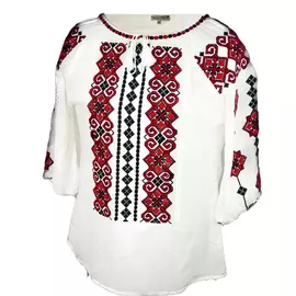 Bluza Tip Ie Traditionala Alba cu Motiv Geometric Rosu de Dama - IMS120