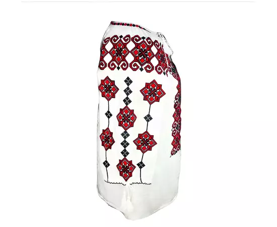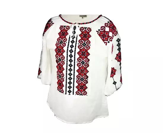 Bluza Tip Ie Traditionala Alba cu Motiv Geometric Rosu de Dama - IMS120