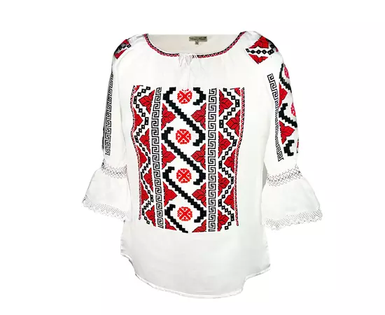 Bluza Tip Ie Traditionala Alba cu Motiv Geometric Rosu de Dama - IMS123